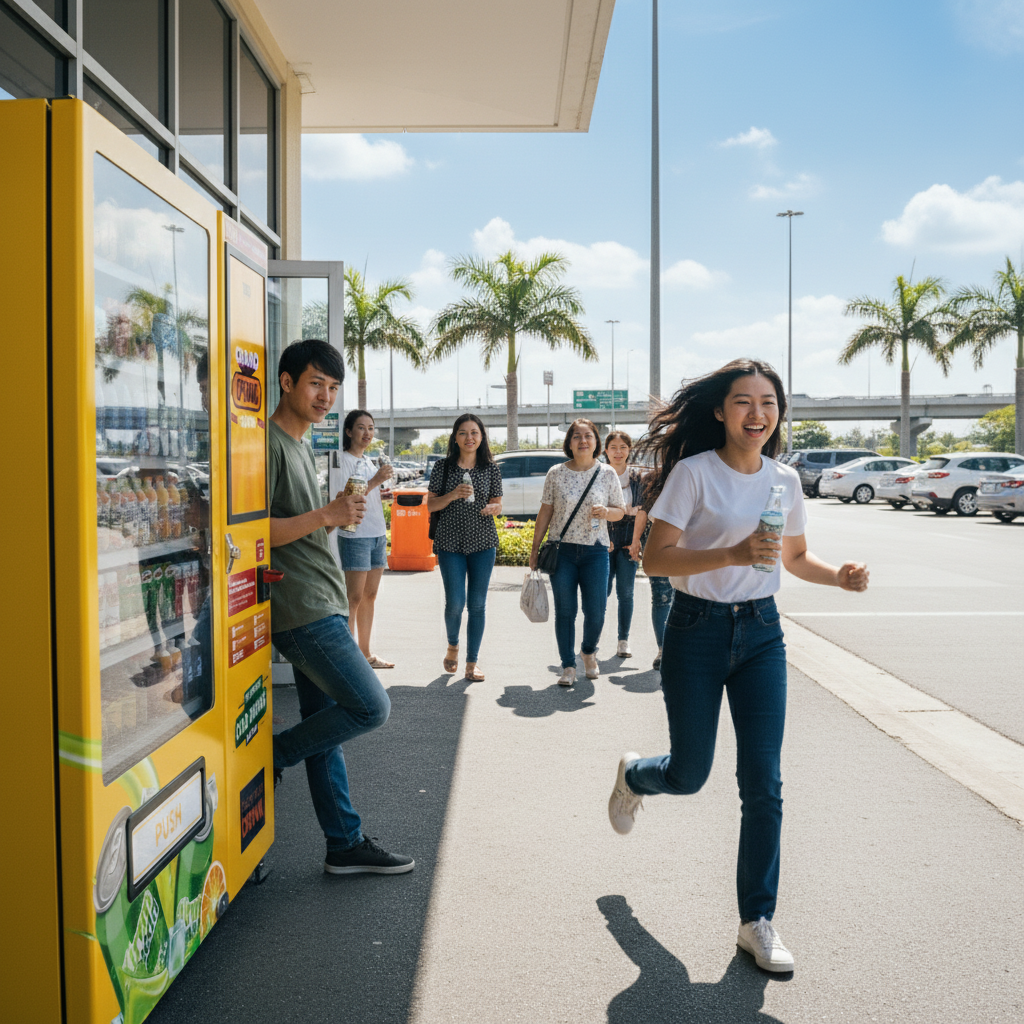 Tiết kiệm thời gian: Hành khách có thể mua hàng nhanh chóng, không cần xếp hàng chờ đợi, đặc biệt trong thời gian cao điểm. Máy bán hàng tự động hoạt động 24/7, đáp ứng nhu cầu mua sắm bất cứ lúc nào.